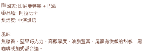 X3 Mandeling & Brazilian Blend 曼巴特調咖啡豆