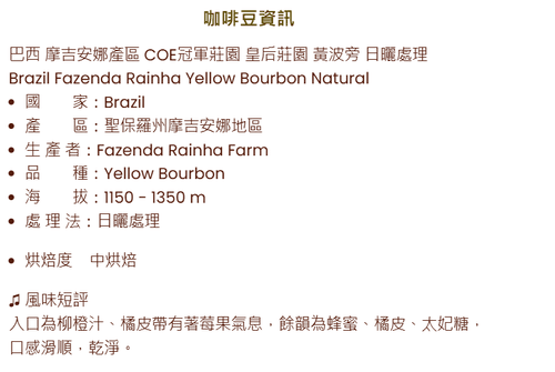 B7 Brazil Fazenda Rainha Yellow Bourbon Natural