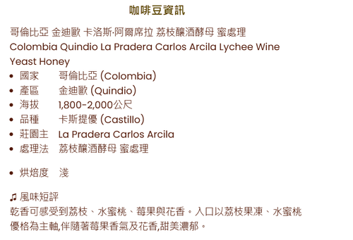 C28 Colombia Quindio La Pradera Carlos Arcila Lychee Wine Yeast Honey