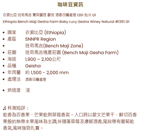 E23 Ethiopia Bench Maji Gesha Farm Baby Lucy Gesha Winey Natural #1361 G1