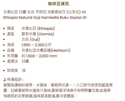 E25 Ethiopia Natural Guji Hambella Buku Sayisa G1