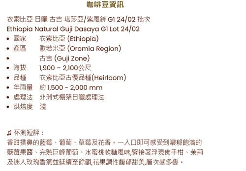 E28 Ethiopia Natural Guji Dasaya G1 Lot 24/02