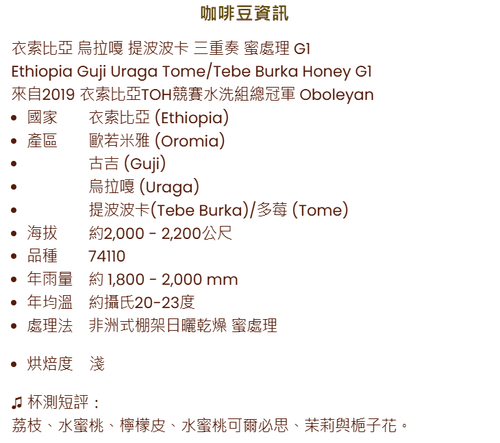 E34 Ethiopia Guji Uraga Tome/Tebe Burka Honey G1