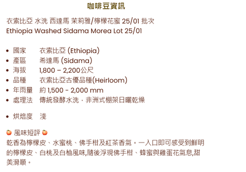 check_circle 200g 原豆 Whole beancheck_circle 淺度烘焙 - 酸質較強,突顯花香🌸果香🍓