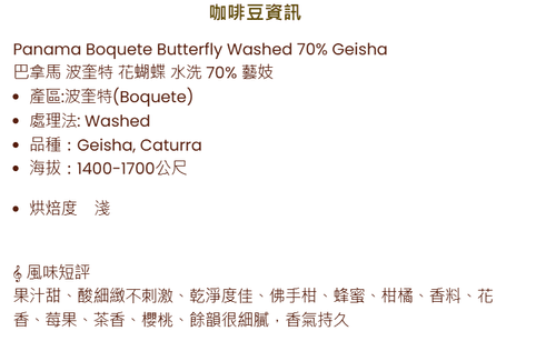 P74 Panama Boquete Butterfly Washed 70% Geisha