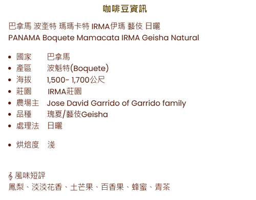 P75 PANAMA Boquete Mamacata IRMA Geisha Natural