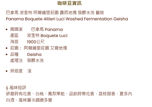 P78 Panama Boquete Altieri Luci Washed Fermentation Geisha
