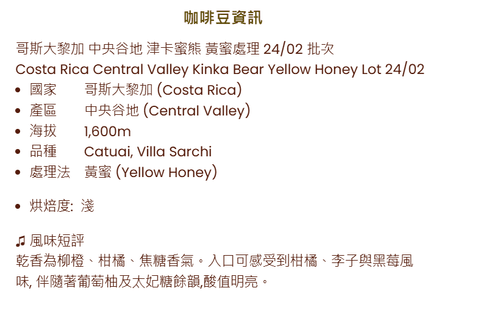 check_circle 200g 原豆 Whole beancheck_circle 淺度烘焙 - 酸質較強,突顯花香🌸果香🍓