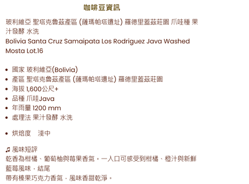 W10 Bolivia Santa Cruz Samaipata Los Rodriguez Java Washed Mosta Lot.16